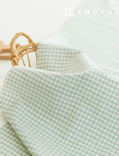 生地パッケージ チェック 4mm さくらんぼ生地 コットンウォッシング 平織り彫刻布 メラン 3種 020 ミント