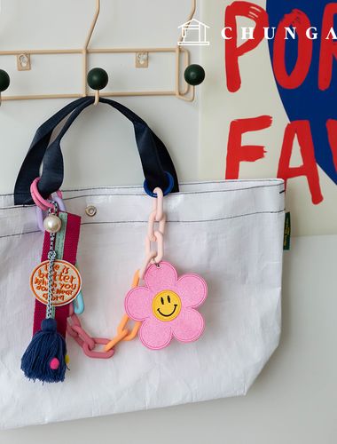 키링 데이지 플라워 키홀더 열쇠고리 체인 인형 키링 핑크스마일