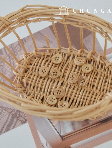 우드 소재에 큐빅 무늬가 더해진 내추럴한 단추입니다.