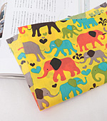 옐로우 컬러에 귀여운 코끼리 패턴이 프린트 된 면혼방 원단입니다.