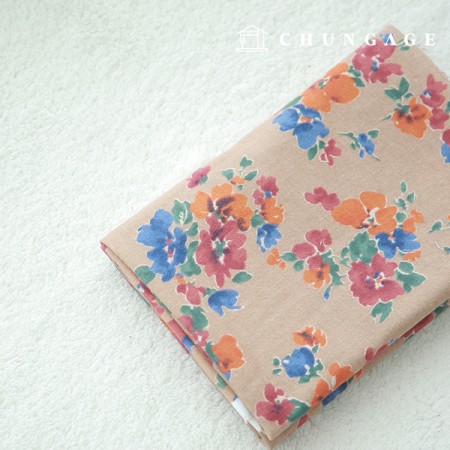 대폭 면기모 컨츄리플라워 베이지
