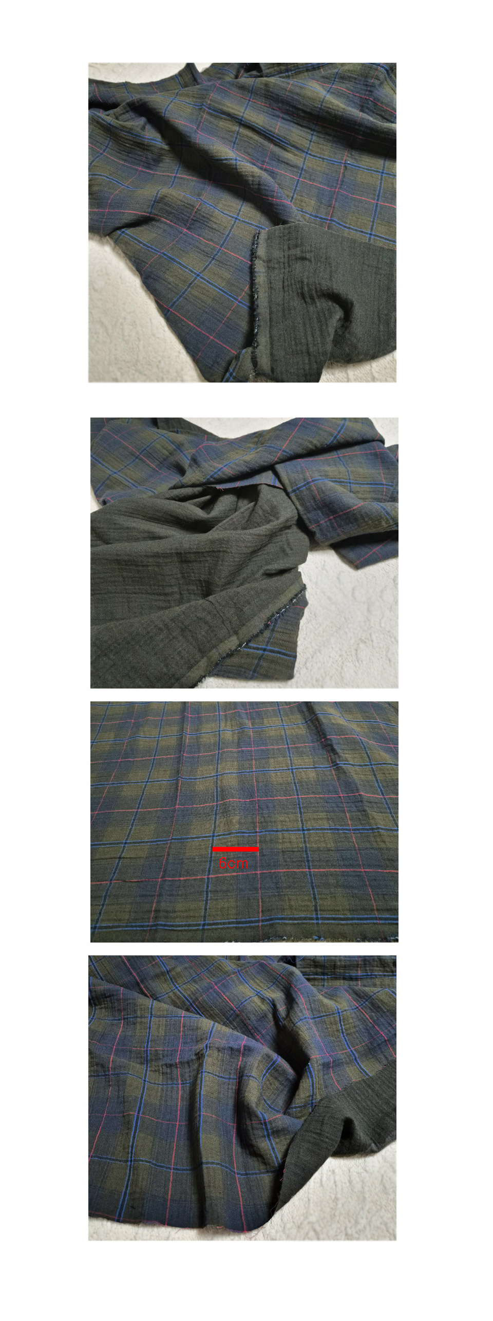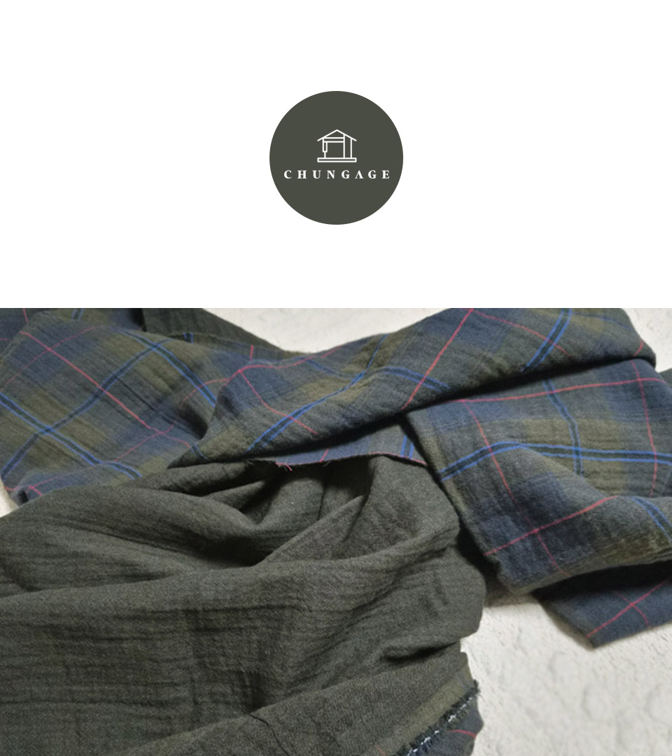 - home > 季節生地 - 夏生地(ガーゼ生地、リップル生地、メッシュ生地、メッシュ生地、シフォン生地、人見生地)、冬生地(極細寺院) > 1) S/Sシーズン(夏生地) > 1]ガーゼ生地 > ヨル二重ガーゼ生地コットン20カウントヤンコットン広幅カーキブラウンチェック