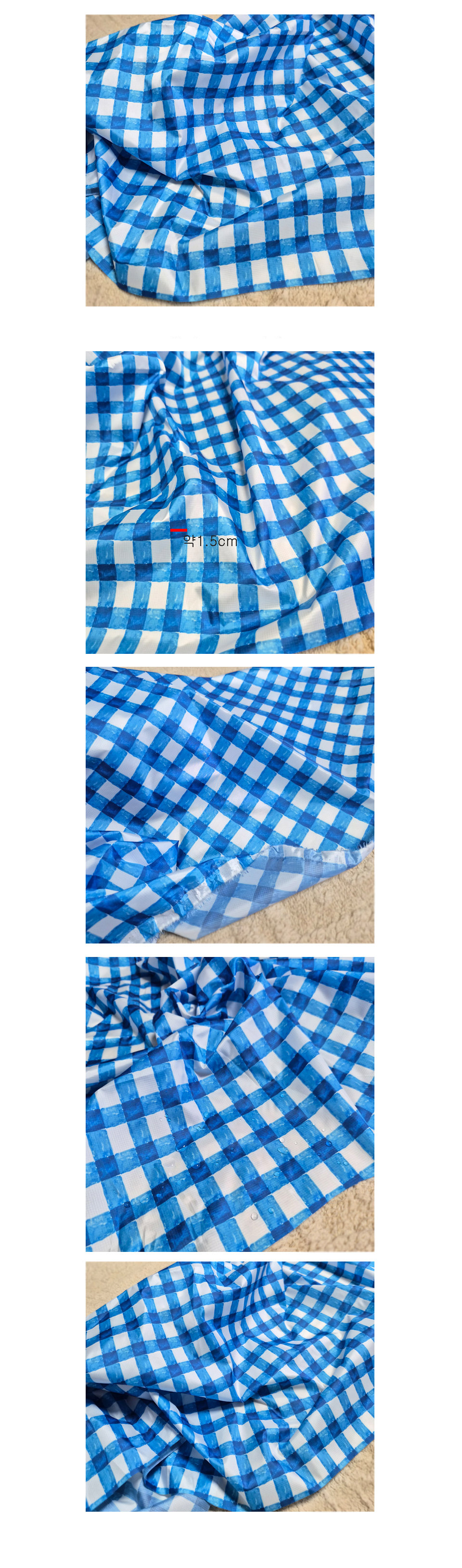- home > 防水布/特殊生地 - ラミネート、防水布、人工皮革生地、バッグ生地、滑り止め生地、マスクフィルター、不織布 > 1) ラミネート/防水生地 > 2]防水コーティングプリント生地 > 防水布 防水布 チェック生地 ウォータードロップ 広幅 50数 青色スクエア